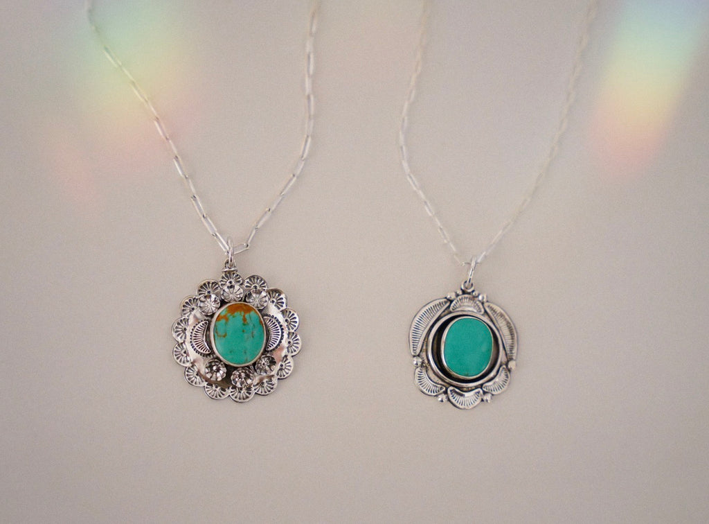 Hand Stamped Turquoise Pendent (18”)