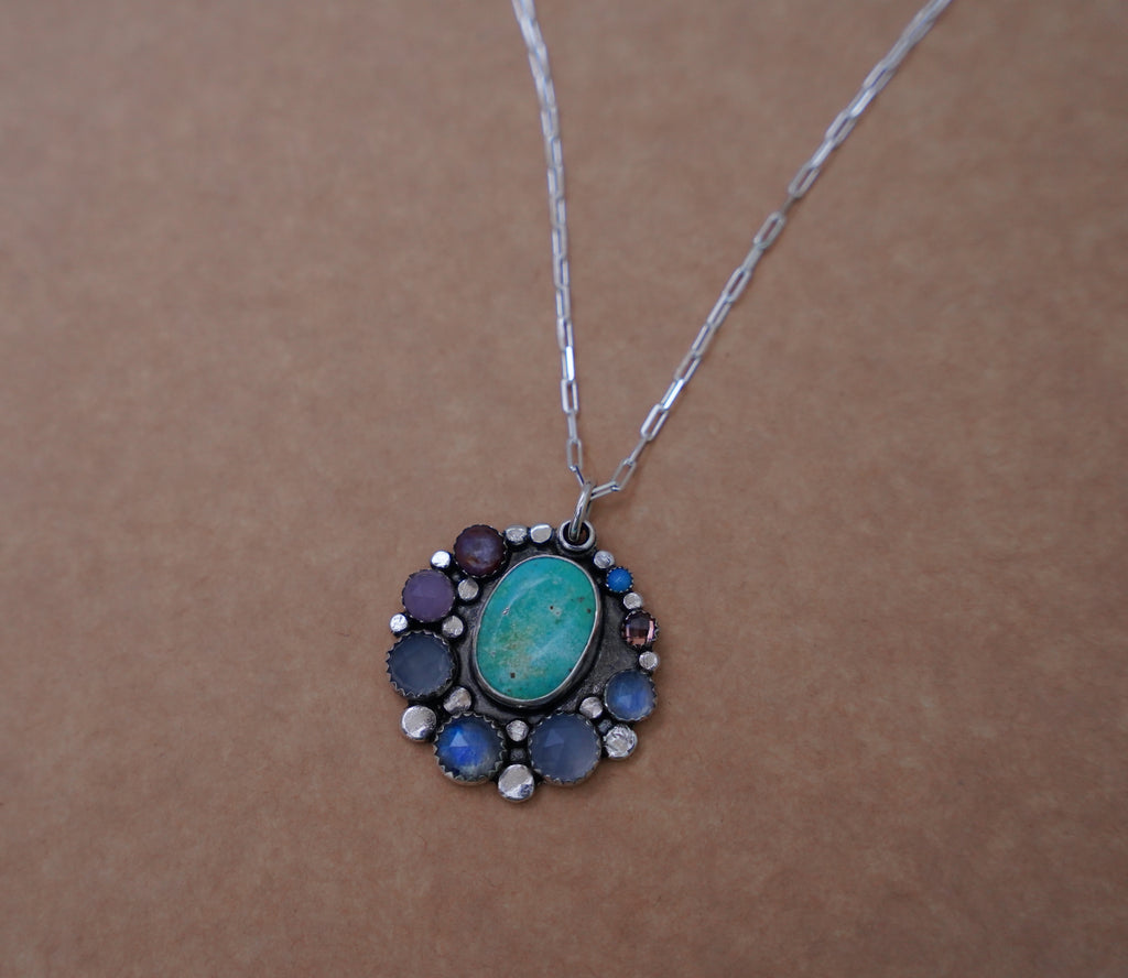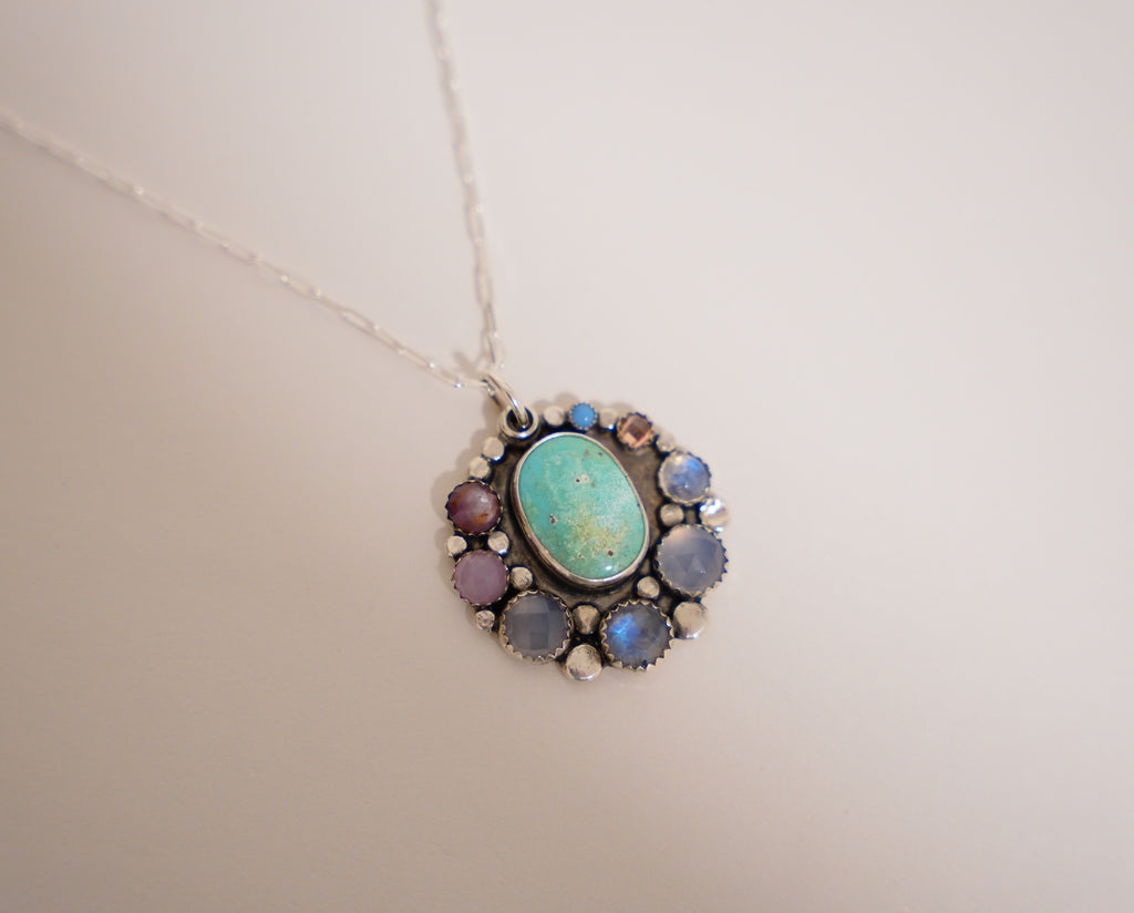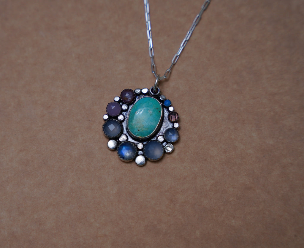 Gem and Turquoise Pendent (18”)