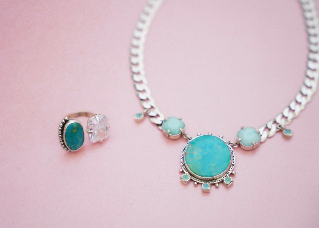 Adjustable Gem and Turquoise Ring (7.5)